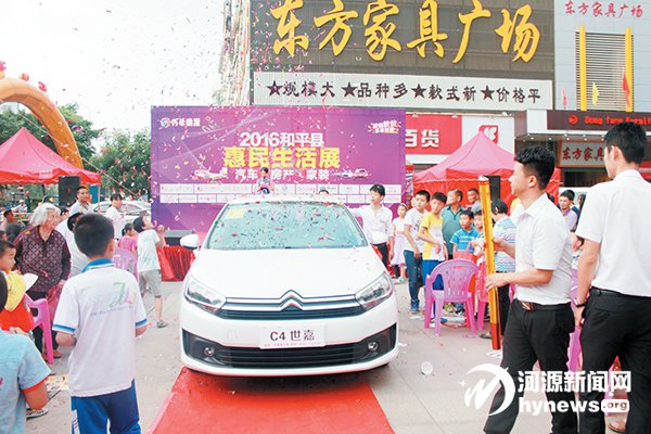 河源市通九州汽車銷售有限公司在本次惠民生活展攜新車東風雪鐵龍C4世嘉、主打車型C3-XR、B 級車型C5、惠民車型愛麗舍亮相。其中,C4世嘉在展會上的新車發布儀式成為和平市民關注的焦點。