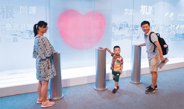 6 月27 日,為慶祝香港回歸祖國二十周年,香港特別行政區政府在北京中國國家博物館推出“香港回歸祖國二十周年——同心創前路掌握新機遇”成就展,展覽面向公眾免費開放,并將持續到7 月16 日。圖為民眾在展廳入口的“同心圓”裝置前。