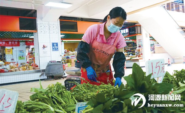 記者走訪源城區(qū)中心市場(chǎng),看到各式各樣的蔬菜井然有序地?cái)[放著,生菜1.5元/斤、小白菜1.5元/斤、芥菜1.5元/斤……“一元菜”種類(lèi)繁多,許多市民站在攤位前開(kāi)心地挑選蔬菜,不時(shí)與攤主交談幾句,詢(xún)問(wèn)蔬菜的價(jià)格。