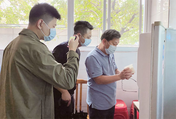 督查組檢查食堂食物留樣 記者 高雅 攝