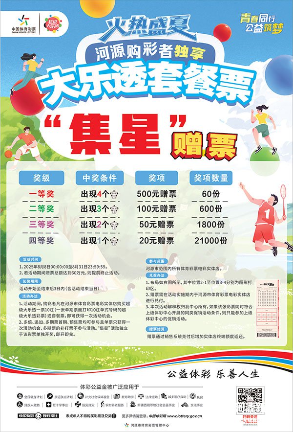河源體彩邀您參與2025年超級大樂透套餐票“集星”贈票營銷活動 為生活增添樂趣 共享健康與幸運