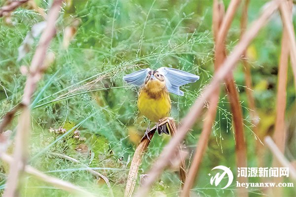 近日,河源攝影師在東源縣東江國家濕地公園巡查過程中,意外發現了被《世界自然保護聯盟》列為極危物種、國家一級重點保護野生動物——黃胸鹀(wú)(俗稱“禾花雀”)。這是近年東源縣內首次觀測到該物種活動的影像記錄。