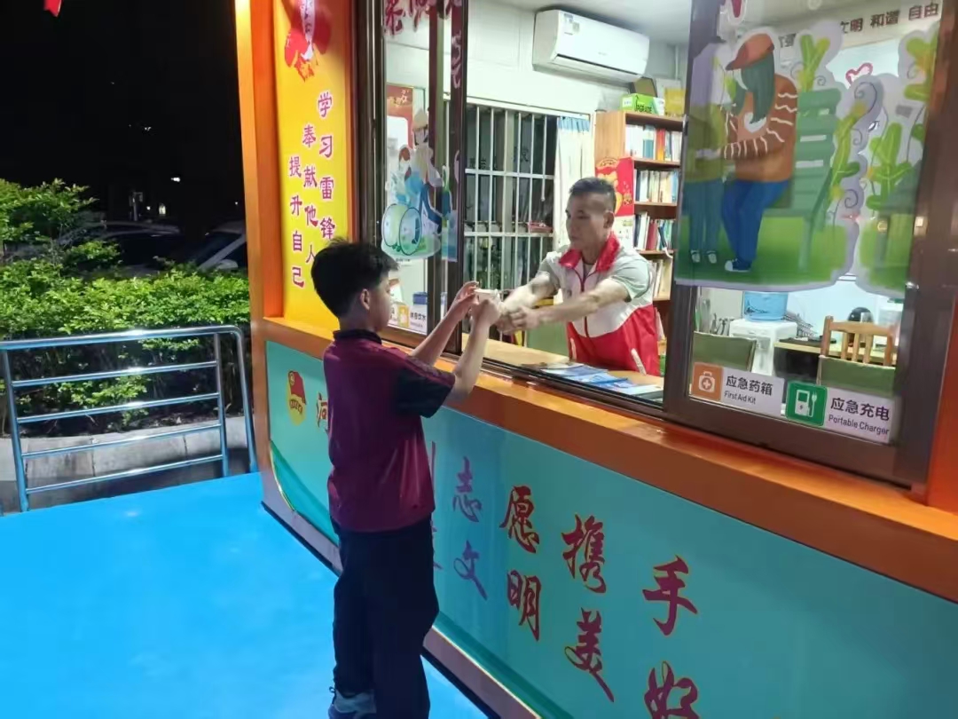 夜幕下的市文化廣場志愿驛站,常能看到志愿者劉偉軍的身影。他打掃衛生、解答咨詢、遞送熱水,讓驛站成為市民的“暖心港灣”。