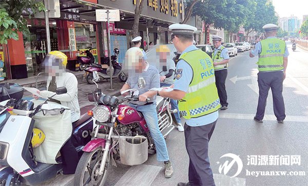 龍川交管大隊在重點路段開展“一盔一帶”主題宣傳。