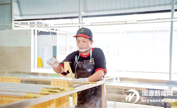 腐竹車間有2條手工產線,數名工人從豆漿池中挑起一條條腐皮晾在架子上。晾曬車間、烘干車間、包裝車間等,都放著一排排腐竹半成品。和平本土腐竹制作工藝擁有百年歷史,大拓農業依托非遺工藝,打造透明化智能生產線,精選非轉基因大豆,嚴格遵循“零防腐劑、零添加劑、零農殘”三零標準,推出腐竹、豆油皮、豆漿晶等基礎產品矩陣。據介紹,腐竹車間投產后每天可產腐竹1000斤。