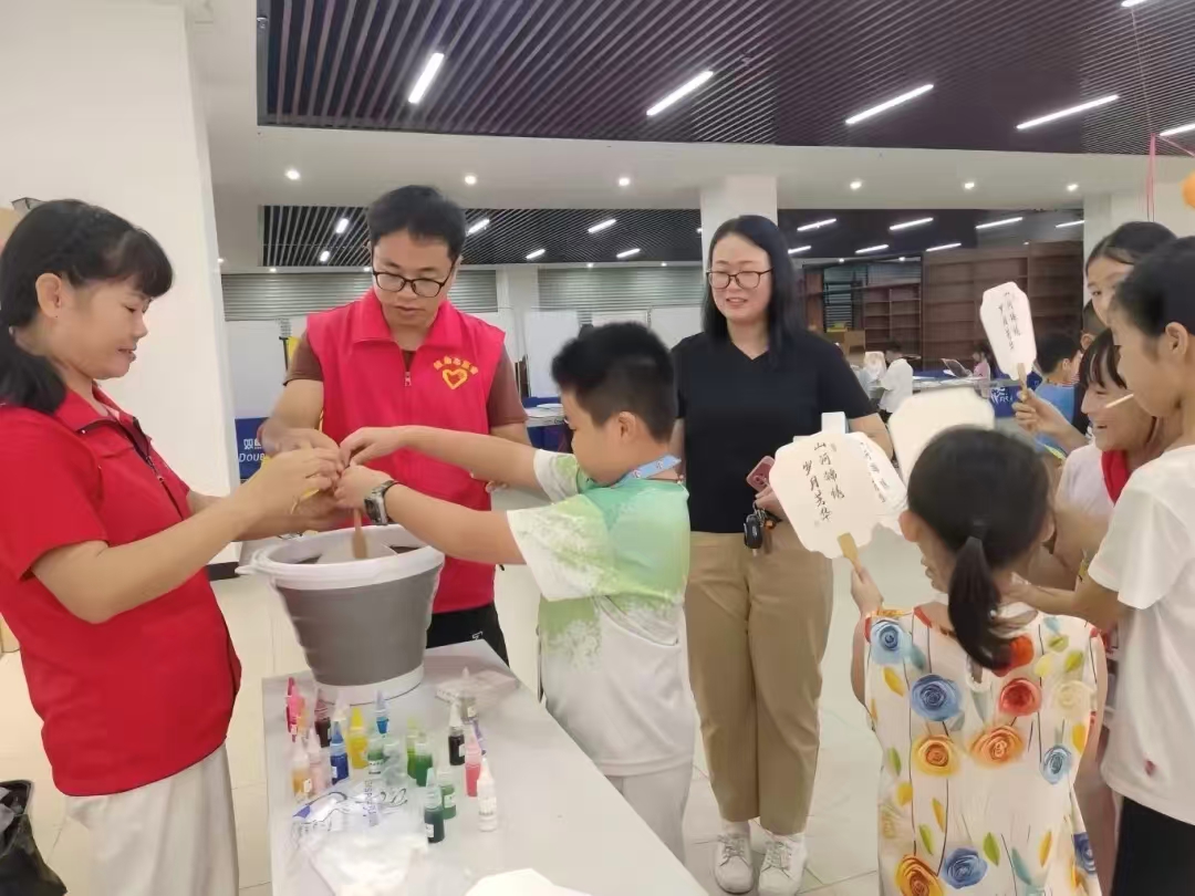在文化傳承體驗區,“醒獅手工燈籠制作”與“非遺漆扇體驗”尤其引人注目,吸引了不少親子家庭參與。在志愿者認真指導下,家長與孩子們默契配合,全神貫注地投入到創作中。當一個個栩栩如生的醒獅燈籠在手中點亮,當一把把獨一無二的漆扇在指尖綻放絢麗的色彩,孩子們臉上綻放出燦爛而欣喜的笑容,家長則在親密協作中感受到濃濃的溫情。