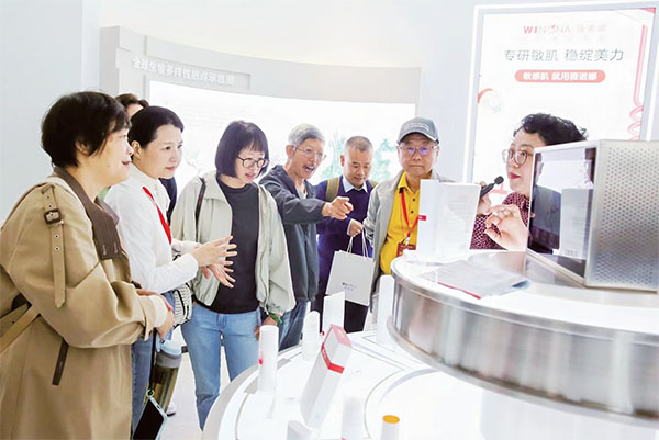 在貝泰妮中央工廠的展廳里,社長、總編輯們看到了以“薇諾娜”為核心的多個品牌產品,不少人是“薇諾娜”的消費者,對更新迭代的產品充滿好奇。